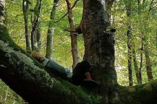 När vi skogsbadar spenderar vi tid i skogen på ett särskilt närvarande sätt, med våra sinnen i en fördjupande kontakt med omgivningen.
